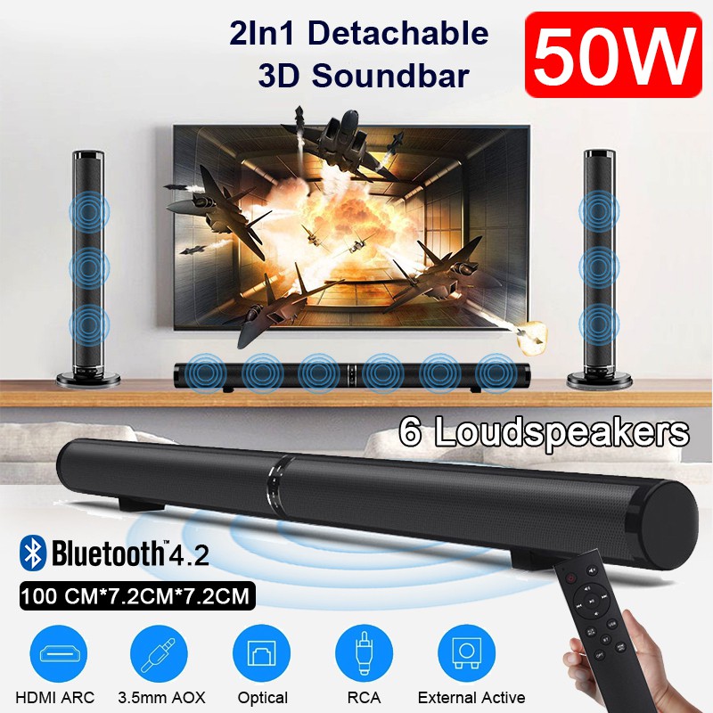 50W Wireless Bluetooth Speaker Detachable 6+2 DIY Stereo Soundbar Home