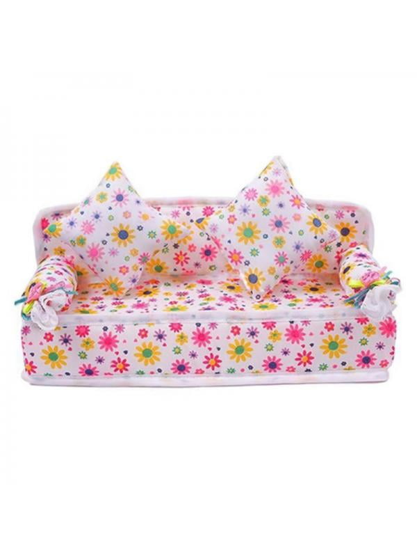 Bowknot Romantic Mini-Doll House DIY Room Decor Barbie Floral Sofa